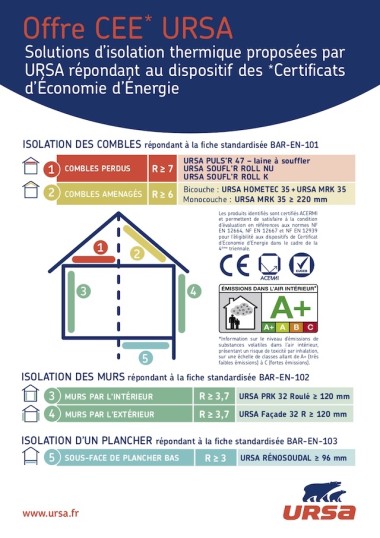 Retrouvez tous les détails sur les solutions d’isolation thermique proposées par URSA répondant au dispositif des Certificats d’Économie d’Énergie dans les illustrations de cet article.
