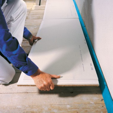 Il s’agissait d’une ancienne écurie de 60 m2, inutilisée depuis de nombreuses années et accolée à une maison du 19ème siècle. Le propriétaire souhaitait en faire un salon mais l’état du sol, réalisé avec un mortier et des pavés d’époque, laissait trop à désirer. Le propriétaire ne souhaitait pas décaisser la pièce en profondeur pour couler une nouvelle chape ce qui aurait entrainé des travaux trop longs et trop lourds, nous avons donc du trouver une solution de recouvrement rapide et propre qui permettrait de poser un nouveau carrelage au sol. En outre, la faible épaisseur des plaques (18 mm) et de l’isolant polyuréthane ont permis de rattraper la hauteur de sol de la maison accolée.
