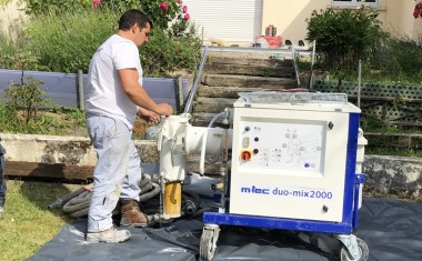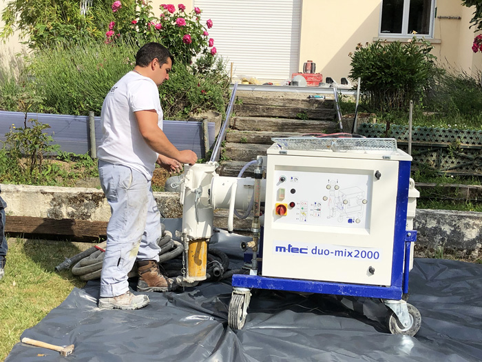 L'artisan s'approvisionne en produits Weber qui doivent être réceptionnés sur chantier la veille du coulage. Il commande, en même temps, le service weber pompe pour planifier l'intervention. La facturation se fait à la journée (tarif indicatif : 1350 € HT), sachant que le type de produit et l'épaisseur d'application impactent le volume pouvant être pompé à la journée (qui ne peut excéder 25 tonnes).